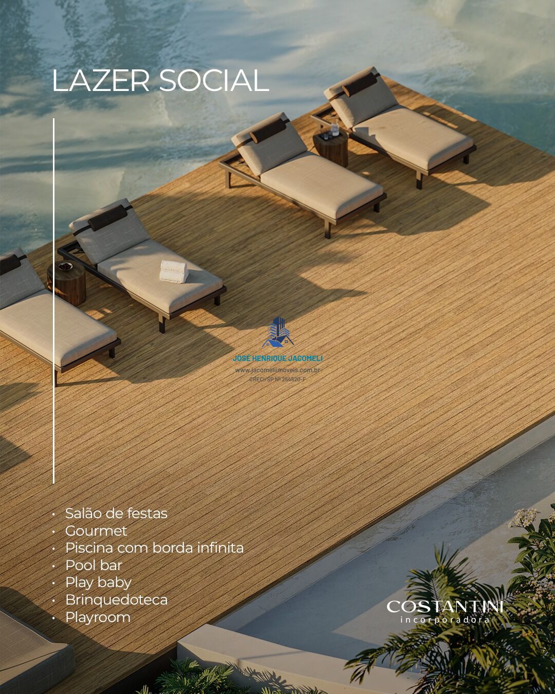 - Piscina de borda infinita, pool bar e salões de festas.